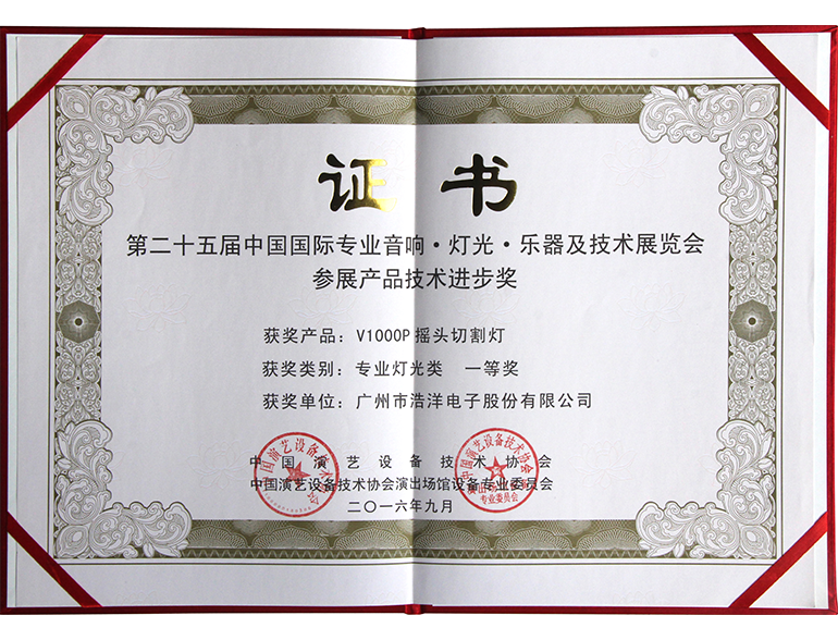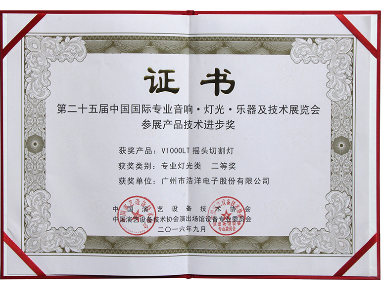 中國(guó)演藝設(shè)備協(xié)會(huì)第二十五屆PALM展產(chǎn)品技術(shù)進(jìn)步獎(jiǎng)二等獎(jiǎng)V1000LT