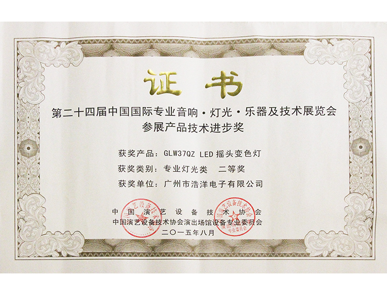 中國(guó)演藝設(shè)備協(xié)會(huì)第二十四屆PALM展產(chǎn)品技術(shù)進(jìn)步獎(jiǎng)二等獎(jiǎng)GLW370Z