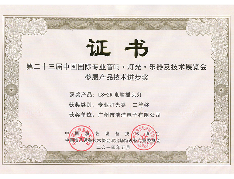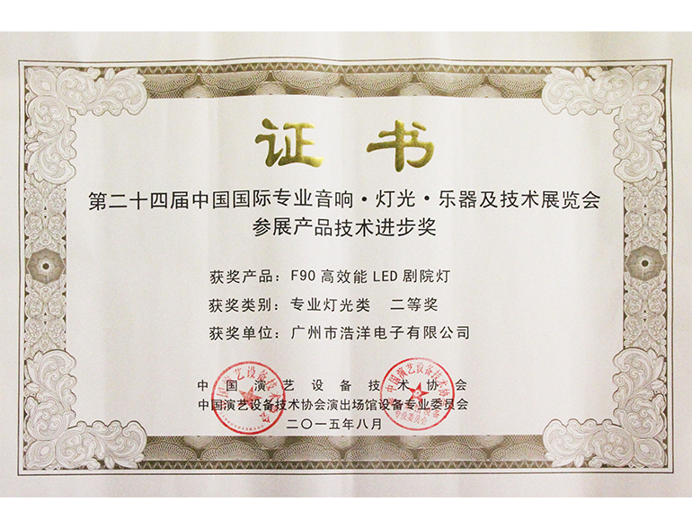中國(guó)演藝設(shè)備協(xié)會(huì)第二十四屆PALM展產(chǎn)品技術(shù)進(jìn)步獎(jiǎng)二等獎(jiǎng)F90