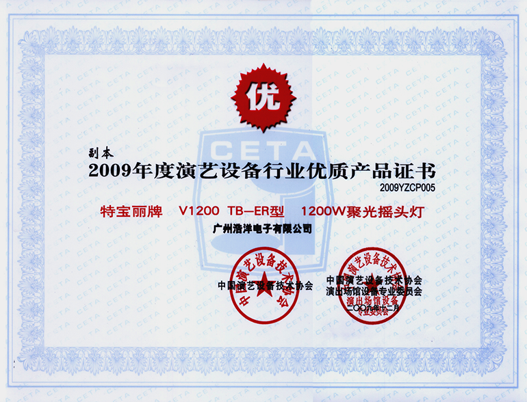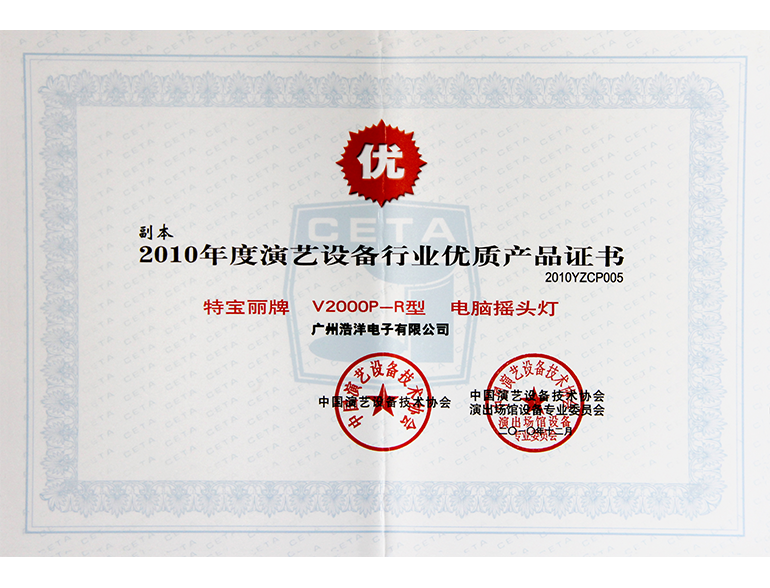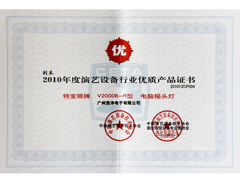 2010年度中國(guó)演藝設(shè)備行業(yè)優(yōu)質(zhì)產(chǎn)品V2000B