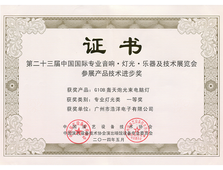 中國(guó)演藝設(shè)備協(xié)會(huì)第二十三屆PALM展產(chǎn)品技術(shù)進(jìn)步獎(jiǎng)一等獎(jiǎng)G10B