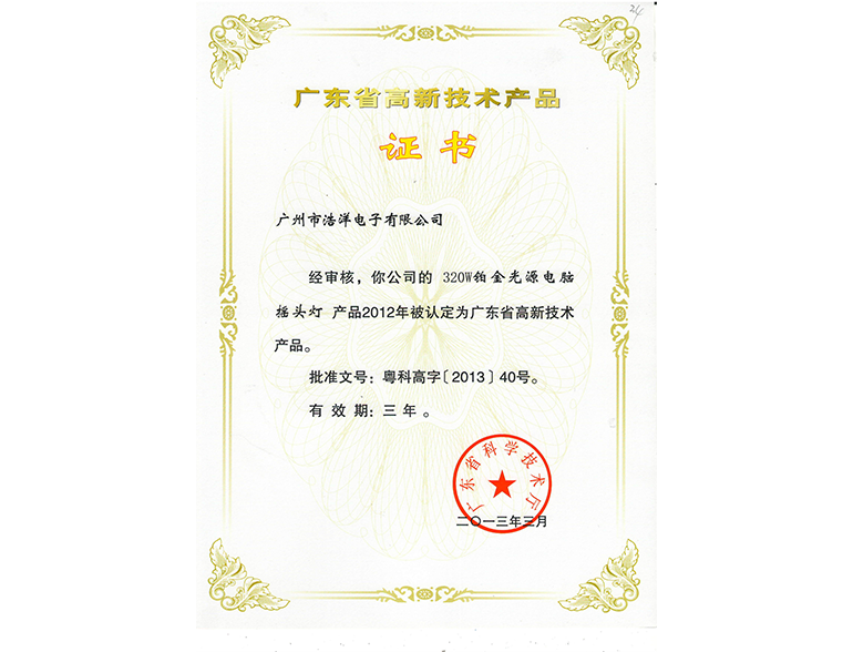 廣東省高新技術(shù)產(chǎn)品-320W鉑金光源電腦搖頭燈