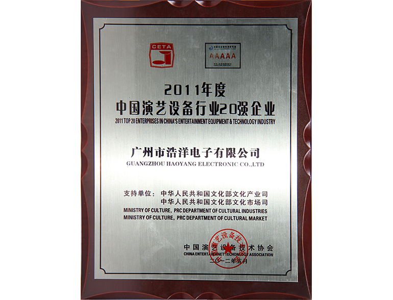 中國演藝設(shè)備行業(yè)20強(qiáng)企業(yè)