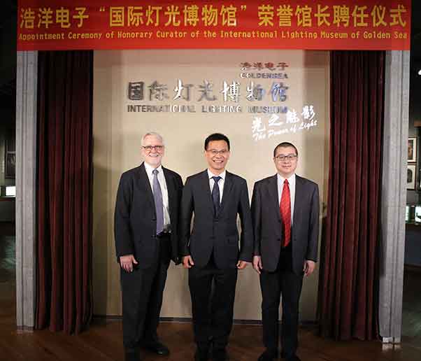 “國際燈光博物館”的前身是“光之力量”(The Power of Light)博物館,它的創(chuàng)始人是《舞臺燈光》(《Stage Lighting》)一書的作者、以色列著名舞臺燈光設(shè)計師Dan Redler。2016年廣州市浩洋電子股份有限公司董事長蔣偉楷將其帶到中國,并不斷為博物館加入和完善東方元素尤其是中國專業(yè)燈光歷史元素,進(jìn)而形成了如今的“國際燈光博物館”。 2017年2月,中國舞臺美術(shù)學(xué)會會長曹林,國際舞美組織前主席、美國斯坦福大學(xué)教授Mr. Michael Ramsaur正式受聘為浩洋電子“國際燈光博物館”榮譽館長,這為促進(jìn)博物館大發(fā)展、推動在全球范圍內(nèi)的合作共建奠定了良好基礎(chǔ),也為推進(jìn)浩洋電子與國際舞美組織和中國舞美學(xué)會的進(jìn)一步深度合作打開了新的局面,相信兩位榮譽館長加入?yún)⑴c博物館的管理與建設(shè),必將引領(lǐng)國際燈光博物館未來發(fā)展邁向新臺階,為推動國內(nèi)外戲劇燈光歷史傳承與發(fā)展、推進(jìn)科技與文化藝術(shù)的融合發(fā)揮更大作用。