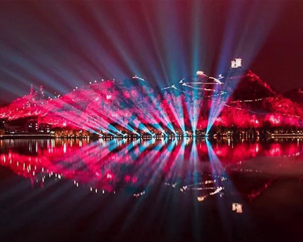 浩洋燈光璀璨點亮貴州安順虹山湖,以藝術(shù)與科技的完美融合打造大型山水湖景燈光秀《明鑲西秀 意寫江南》