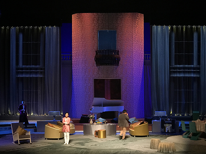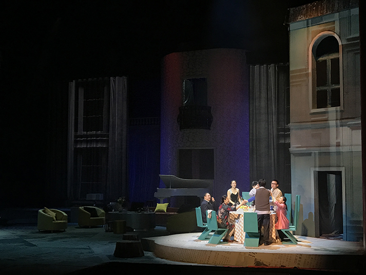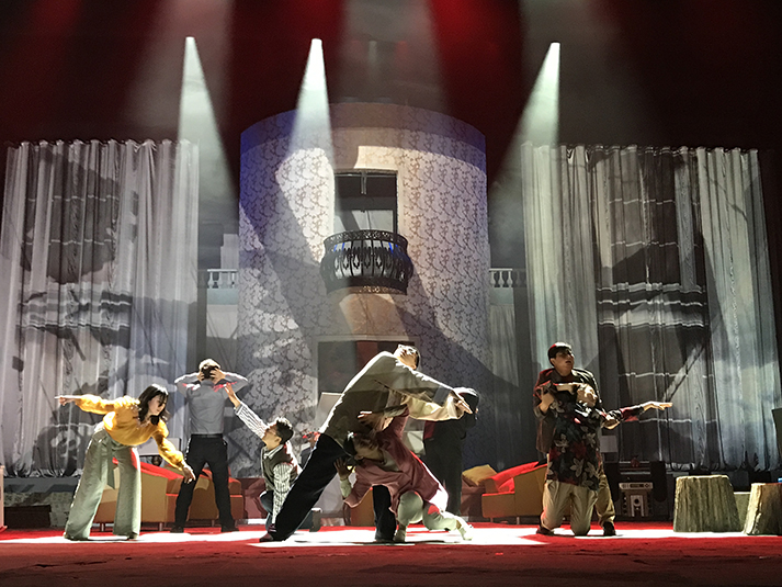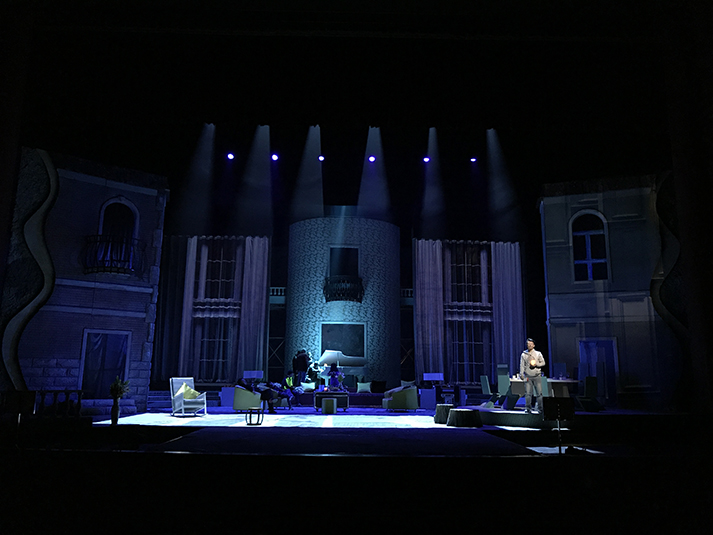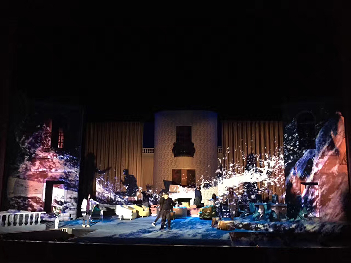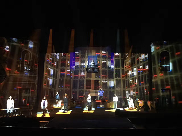 該劇有對人物靈魂的拷問、對人性的追問,也有對生命意義的表達,在雄渾凝重的燈光設(shè)計風(fēng)格上,著重呈現(xiàn)劇目的人物塑造。該劇中,LED切割燈GL-6和LED圖案燈GL-5,承擔(dān)了劇目面光和舞臺特效的作用,憑借高亮度、均勻的光斑、全面的功能和穩(wěn)定的運轉(zhuǎn),成功為該劇護航。尤其是LED燈具在調(diào)光、頻閃上更加細(xì)膩線性的表現(xiàn),有助于劇情傳達更加微妙細(xì)致的情感。另外,天幕燈C5的八色混色,讓色域?qū)拸V、換色細(xì)膩,投光式渲染法使得效果均勻自然、一致性高,渲染劇場氣氛。