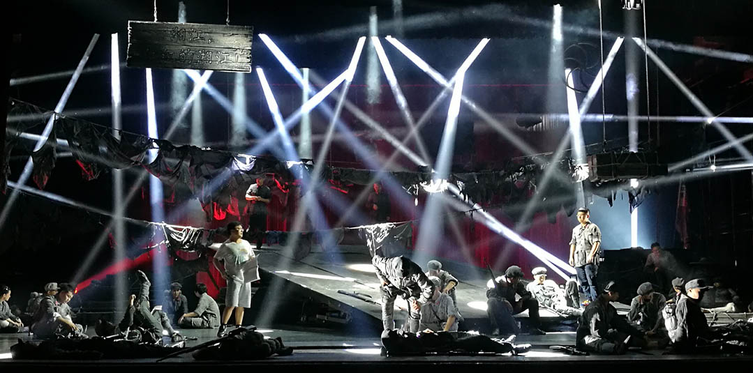 為紀(jì)念紅軍長(zhǎng)征勝利80周年,軍委政治工作部話(huà)劇團(tuán)聯(lián)手中共成都市委宣傳部創(chuàng)作排演的敘述體話(huà)劇《從湘江到遵義》9月28日在京成功首演。該劇由著名導(dǎo)演宮曉東執(zhí)導(dǎo),特邀國(guó)內(nèi)著名燈光設(shè)計(jì)邢辛擔(dān)任燈光設(shè)計(jì)、著名編導(dǎo)孫涓涓任形體設(shè)計(jì)。浩洋電子革命性劇院式電腦燈V1000P、內(nèi)置兩套可任意切換光學(xué)系統(tǒng)的三合一全能王電腦燈G12 HYBRID和頂級(jí)高顯色性電腦搖頭切割燈V3000P等一大批高品質(zhì)特寶麗燈光傾情獻(xiàn)力,為該劇成功首演保駕護(hù)航。