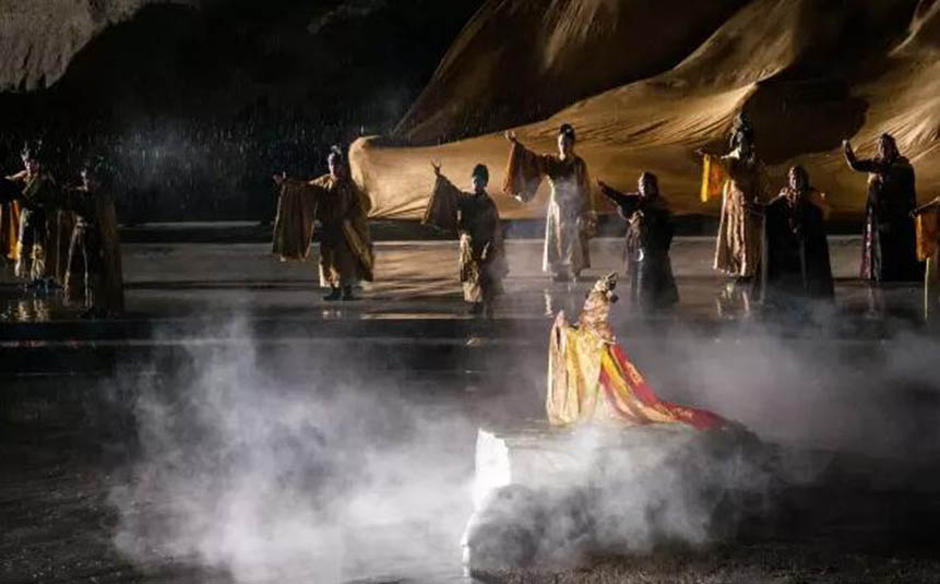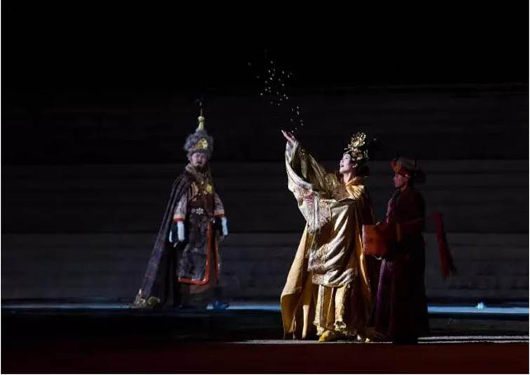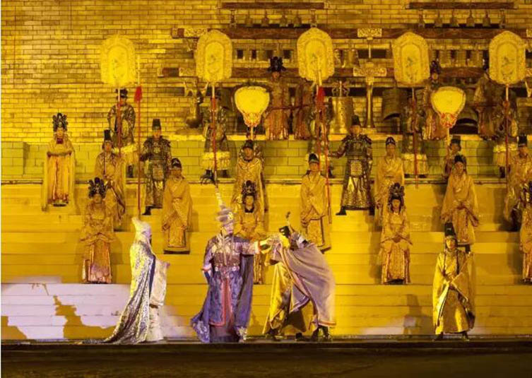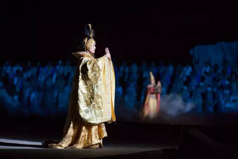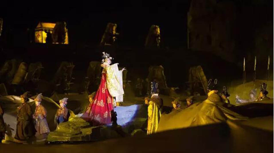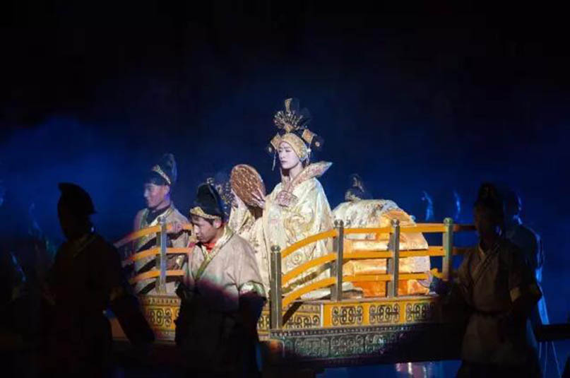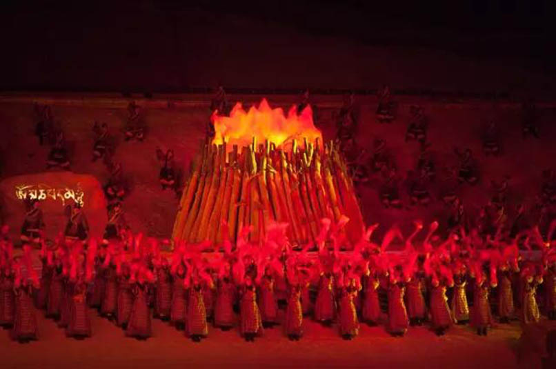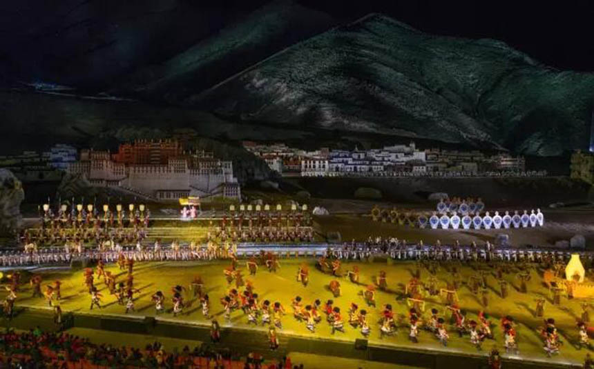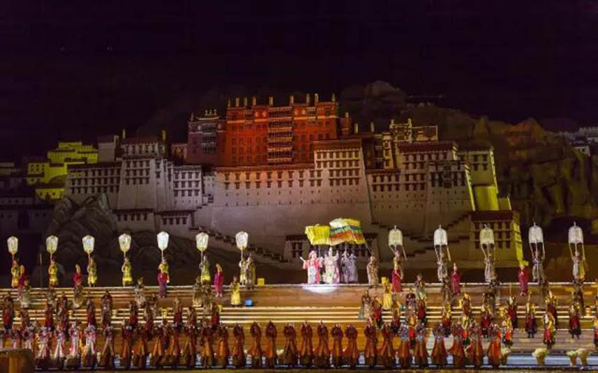 大型藏族實(shí)景劇《文成公主》主要講述文成公主入藏歷經(jīng)艱難的征途和曲折起伏的心路歷程,演繹大唐盛世的愛(ài)情傳奇,傳唱漢藏和美的動(dòng)人史歌。該作品分為“大唐之韻”、“天地梵音”、“藏舞大美”、“藏舞大美”及“藏舞大美”五幕,深度融入漢藏歷史文化、民族風(fēng)俗、自然景觀等,引入了大唐歌舞和流傳久遠(yuǎn)的藏舞、藏戲、佛號(hào)念唱等,通過(guò)人工舞臺(tái)與自然山水的結(jié)合,用高科技的手段呈現(xiàn)非物質(zhì)文化遺產(chǎn),把戲劇、音樂(lè)、舞蹈和現(xiàn)代舞美手段融為一爐,構(gòu)成華美樂(lè)章。
