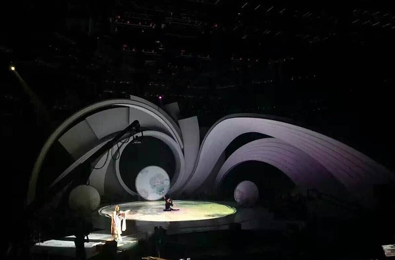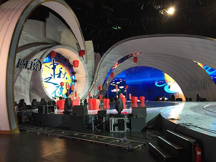 為更好地契合中秋節(jié)溫馨團(tuán)圓的氛圍,湖南衛(wèi)視2016中秋之夜緊扣“花好月圓”的主題,在舞臺(tái)上勾勒花瓣綻放的造型,打造了一個(gè)“小而美”的精致舞臺(tái),花瓣的中心恰似一輪中秋月,一束束的燈光從圓月的輪廓上放射出來(lái),成為整個(gè)舞臺(tái)的焦點(diǎn)。