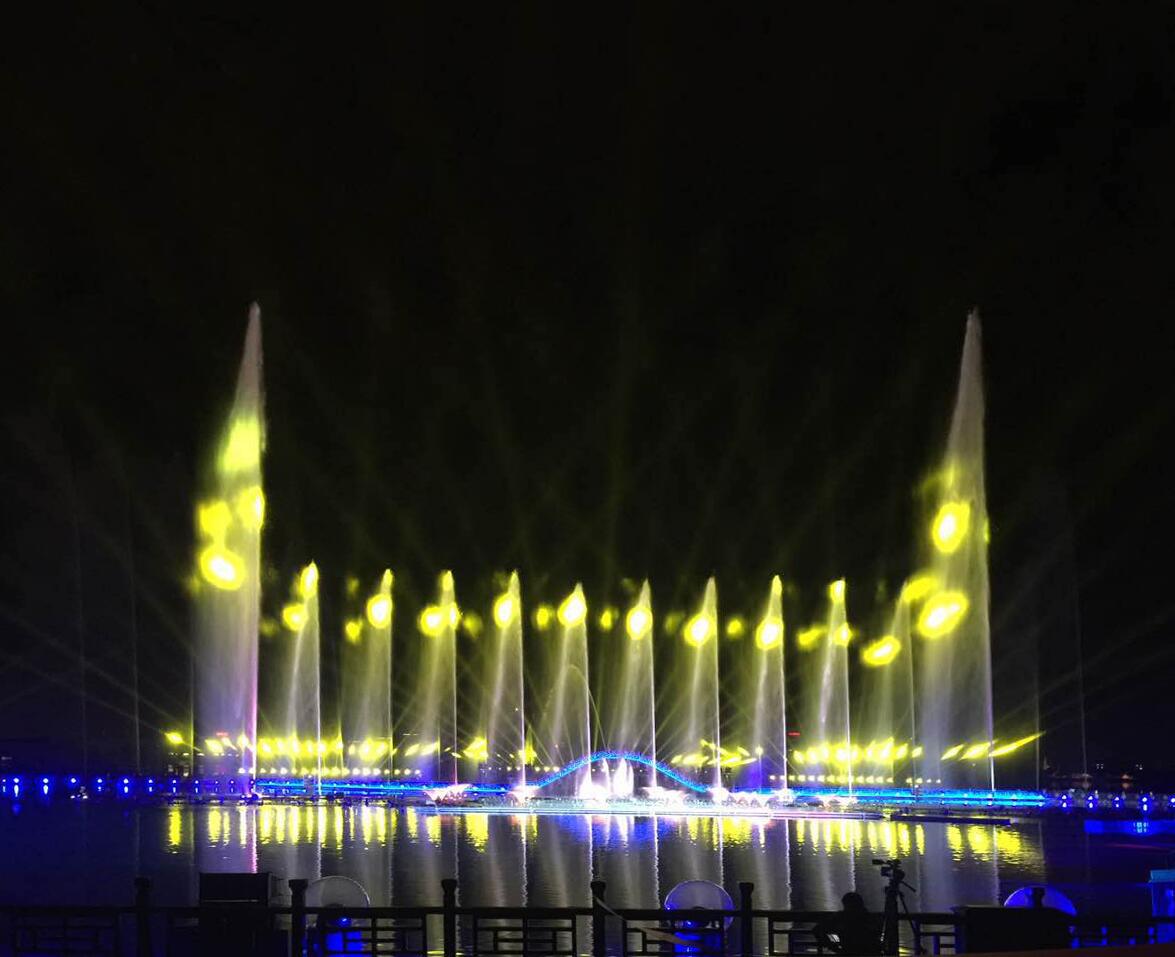 演出位于銀川閱海灣的一個(gè)核心區(qū),其擁有約3000㎡的漂浮平臺(tái)作為主表演區(qū)域,包含了機(jī)械、主體噴泉、投影激光,還有燈光音響等一系列設(shè)備,前方還設(shè)有890㎡的水下舞臺(tái)作為演員的主舞臺(tái)。