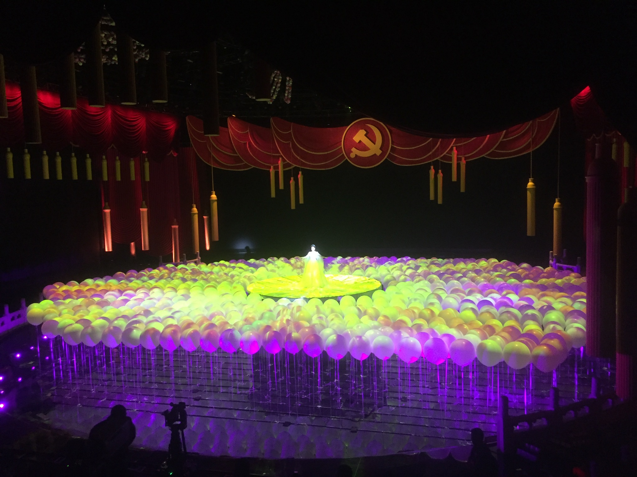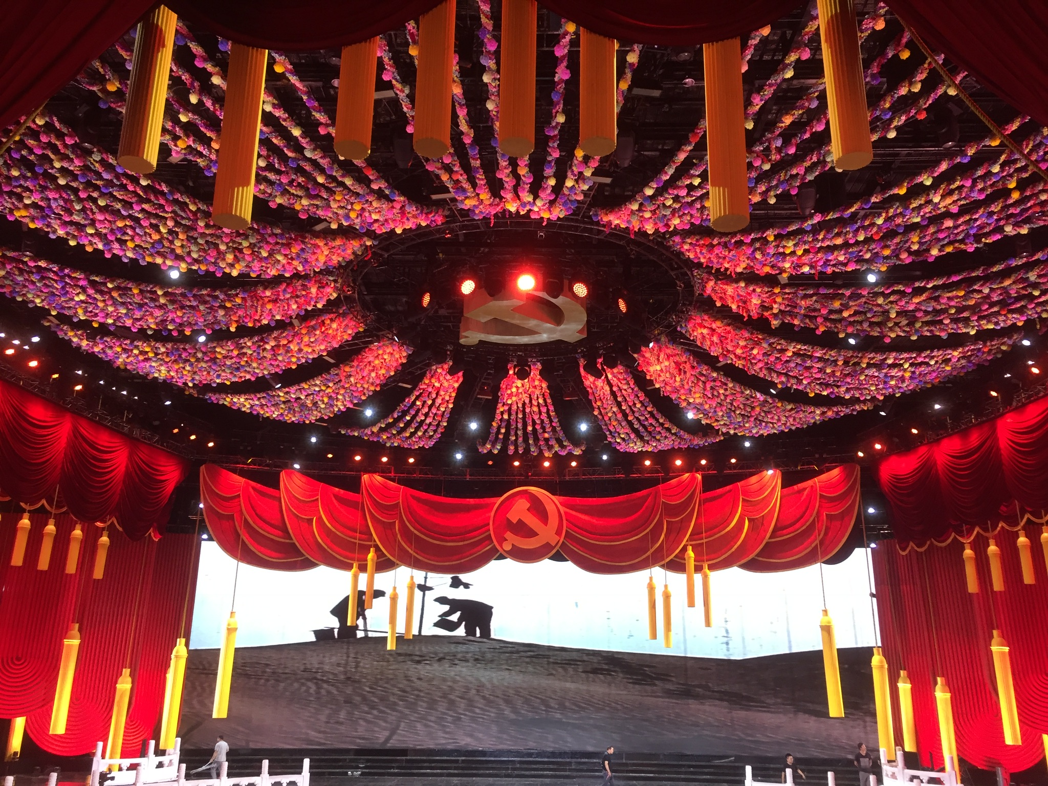 第二,為了突顯宏大的場(chǎng)面,節(jié)目總導(dǎo)演在節(jié)目形式上和單個(gè)節(jié)目的表演人數(shù)、道具使用量上都比常規(guī)晚會(huì)投入更大,這樣就沒(méi)有太多舞臺(tái)空間去做合適燈位,但卻要承載如此多的照明需求,這對(duì)整個(gè)燈光亮度、色彩還原以及光比,和舞臺(tái)氣氛的把控是一次非常大的挑戰(zhàn)。
