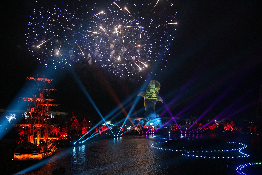 【一場(chǎng)燈光與科技的完美邂逅】浩洋燈光魅力助陣珠海長(zhǎng)隆海洋王國(guó)中心湖大型匯演《海洋保衛(wèi)戰(zhàn)》壓軸上演