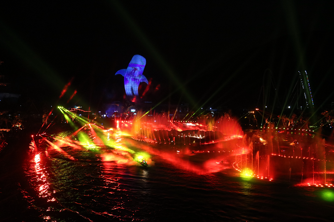 這是一場(chǎng)集無(wú)人機(jī)、煙花表演、燈光秀、激光秀、噴泉匯演、水上飛人、摩托艇特技等元素的震撼視覺(jué)盛宴,炫酷的燈光與幻彩的煙花點(diǎn)亮了整個(gè)海洋王國(guó)的夜空。浩洋燈具以品質(zhì)穩(wěn)定、功能完善、高亮度輸出、色彩效果豐富等特點(diǎn)完美完成了燈光演出,炫麗的光束伴隨著音樂(lè)舞動(dòng),在黑夜中劃出美麗的弧線,讓現(xiàn)場(chǎng)觀眾體驗(yàn)光束伴隨著強(qiáng)勁音樂(lè)節(jié)奏所締造出的燈光波浪,其出色的燈光科技表現(xiàn)手段贏得了長(zhǎng)隆集團(tuán)的深度肯定及認(rèn)同。