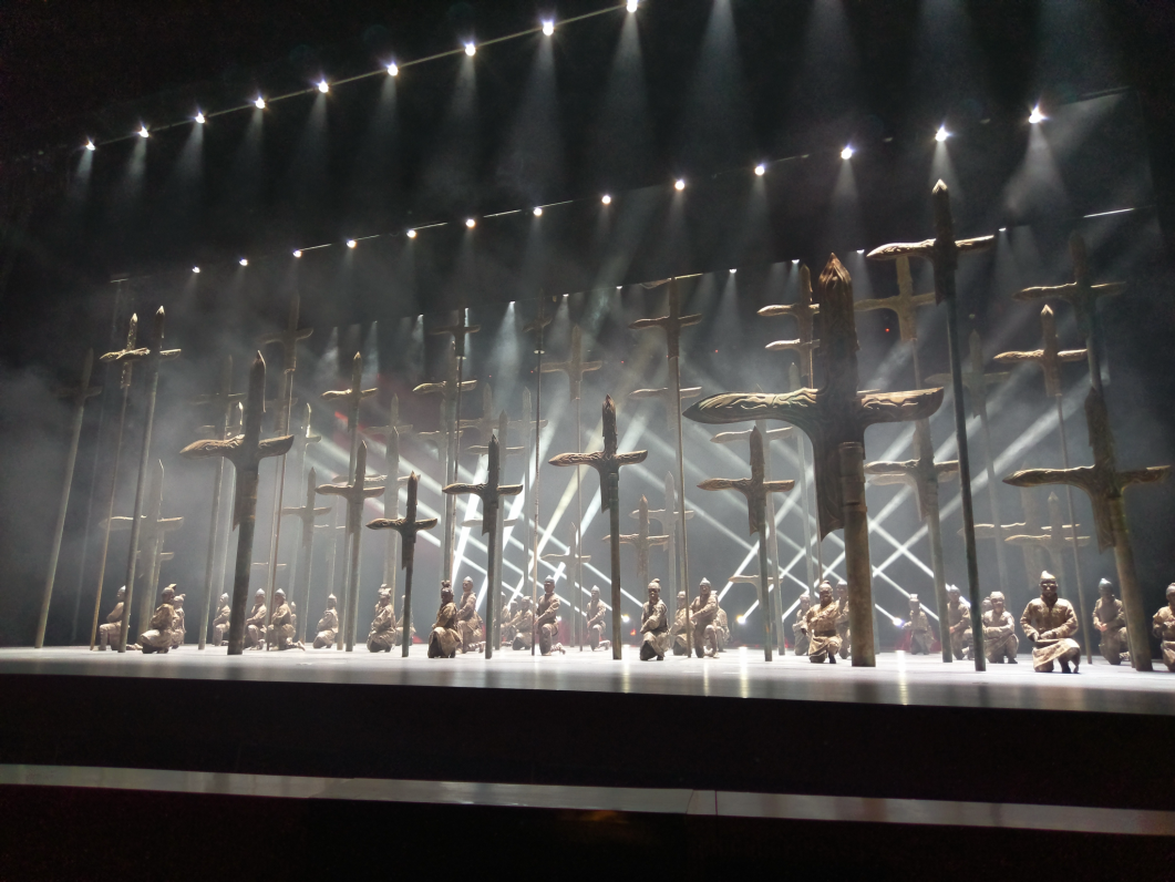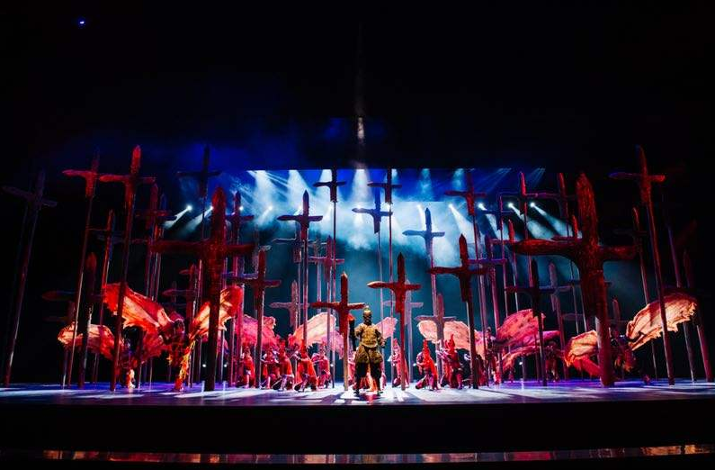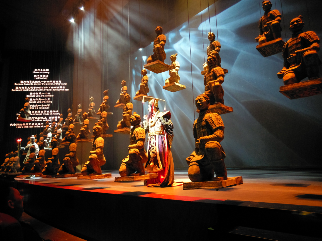 在《秦》秀燈光效果中,總制作著名燈光設(shè)計沙曉嵐采用獨特的燈光風(fēng)格,時而黑白調(diào),時而金碧輝煌,將大秀的感情色彩表現(xiàn)得淋漓盡致,再現(xiàn)大秦帝國的恢弘。