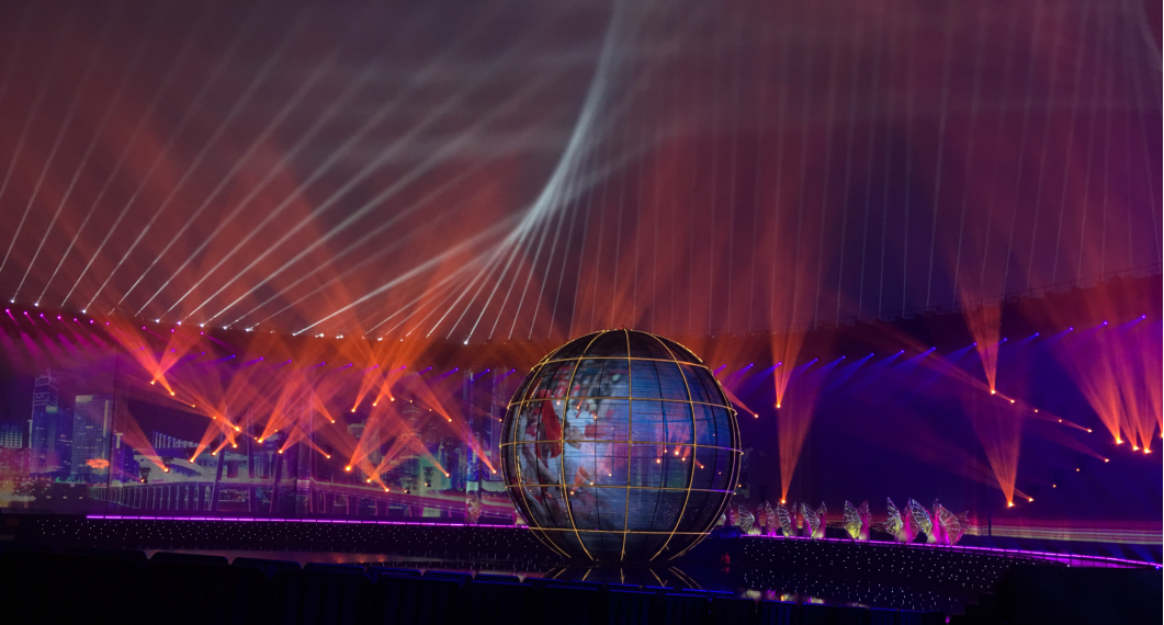? ? ? ?為迎接各方來賓,峰會于2018年6月9日夜間在青島奧帆中心舉辦了一場名為《有朋自遠(yuǎn)方來》的燈光焰火藝術(shù)表演。浩洋電子作為國際領(lǐng)先的專業(yè)燈光設(shè)備供應(yīng)商,為此次燈光焰火藝術(shù)表演提供了主要的專業(yè)優(yōu)質(zhì)燈光服務(wù),129套“浩洋智造”科技創(chuàng)新型飛燈系統(tǒng)攜LED染色燈OK190Z-RII、切割燈V3000P等多款高質(zhì)量專業(yè)舞臺燈具再現(xiàn)國際級文藝演出舞臺,浩洋燈光用出色的燈光科技表現(xiàn)手段再創(chuàng)科技與文化的完美融合,穩(wěn)定高效地為高清電視轉(zhuǎn)播提供了全方位有力的支持。