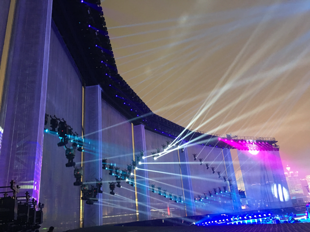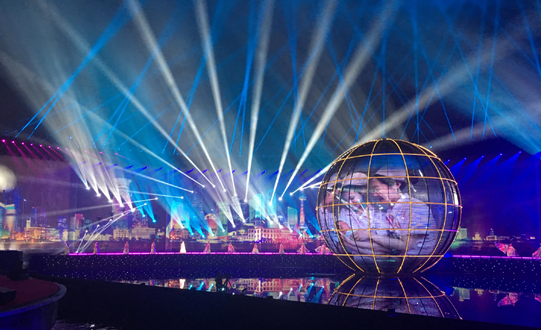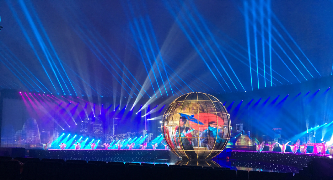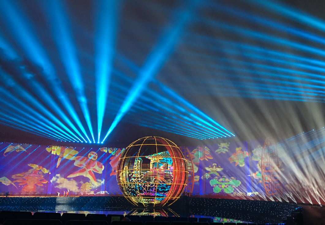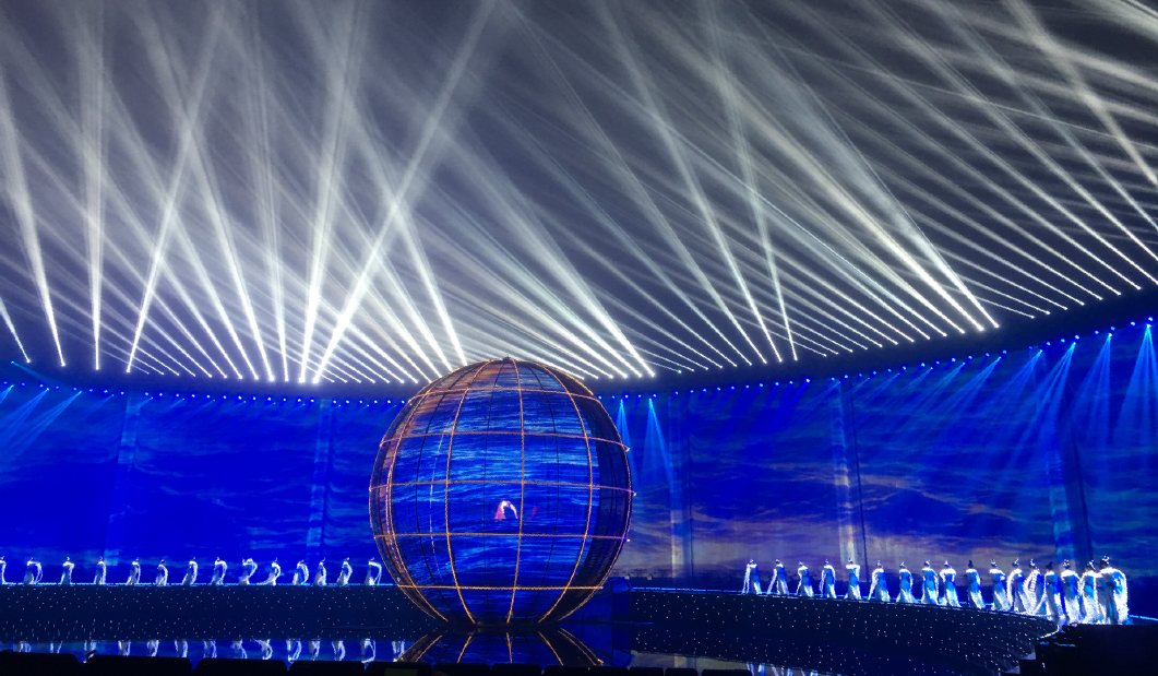 ? ? ? 特別在本次燈光焰火演出中,浩洋電子的飛燈系統(tǒng)依然成為了一大亮點(diǎn),與眾不同的是,浩洋飛燈系統(tǒng)打破了“燈位不動,只有光在運(yùn)動”的限制,讓電腦燈本身也運(yùn)動起來,自由翱翔,實(shí)現(xiàn)從“光的運(yùn)動”到“運(yùn)動的光”著巨大的轉(zhuǎn)變。浩洋飛燈系統(tǒng)的研發(fā)是與2016年9月杭州G20峰會文藝演出《最憶是杭州》息息相關(guān),當(dāng)時(shí)的總制作人著名燈光設(shè)計(jì)沙曉嵐提出“舞蹈演員吊掛著威亞,從外湖飛入西湖演出舞臺”的設(shè)想,與合作方浩洋電子進(jìn)行了大量的研發(fā)試驗(yàn),但由于西湖的地理位置限制,這個創(chuàng)意未能實(shí)現(xiàn),研發(fā)的成果也保留了下來,最終在2017年的央視春晚桂林分會場實(shí)現(xiàn)了浩洋飛燈系統(tǒng)的全球首秀。在本次上海合作組織青島峰會燈光焰火藝術(shù)表演中,浩洋飛燈系統(tǒng)以創(chuàng)新科技化燈光震撼獻(xiàn)力國家重要演出活動,勾勒出一幅科技燈光與文化相融合的視覺美景。