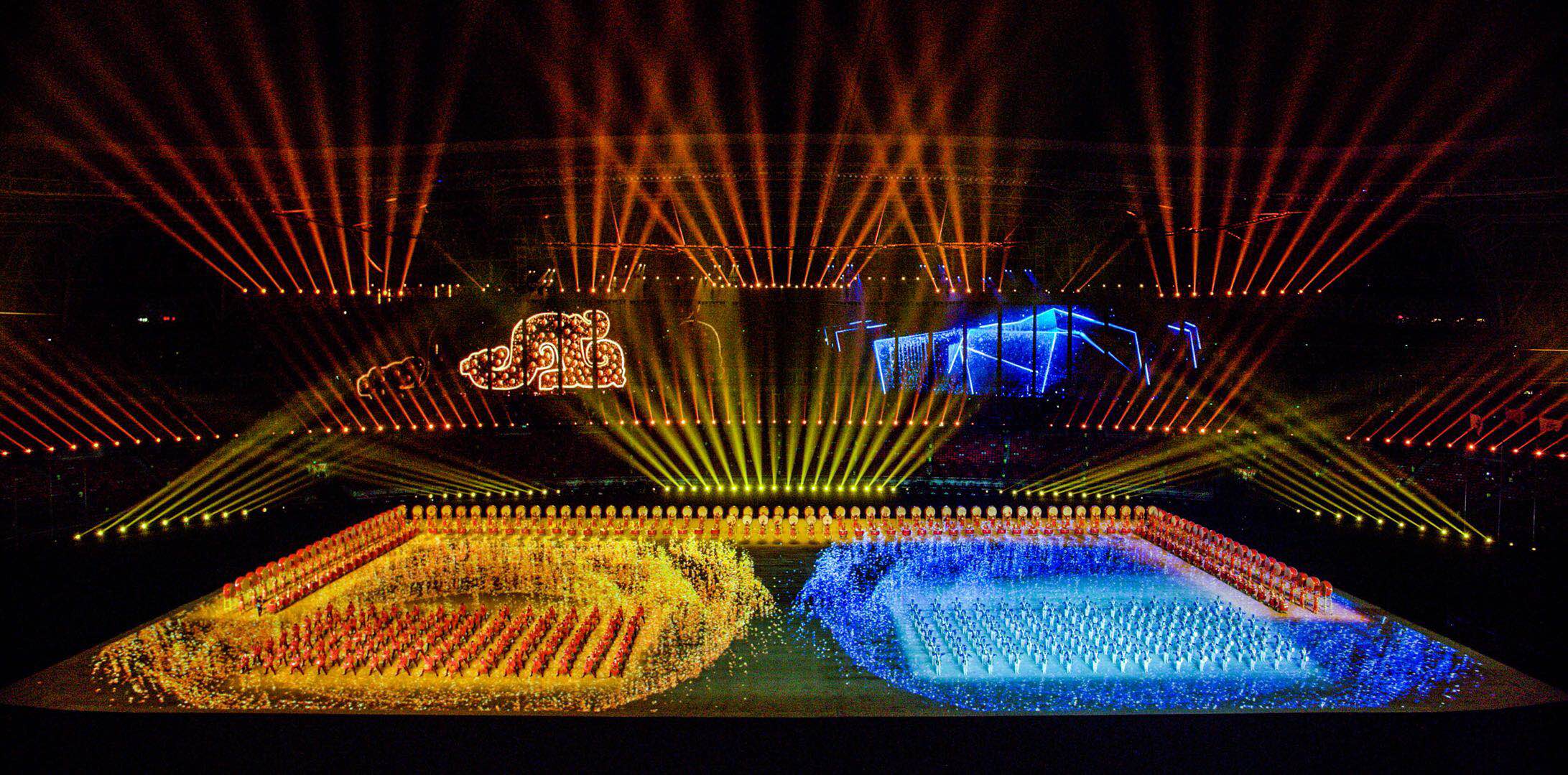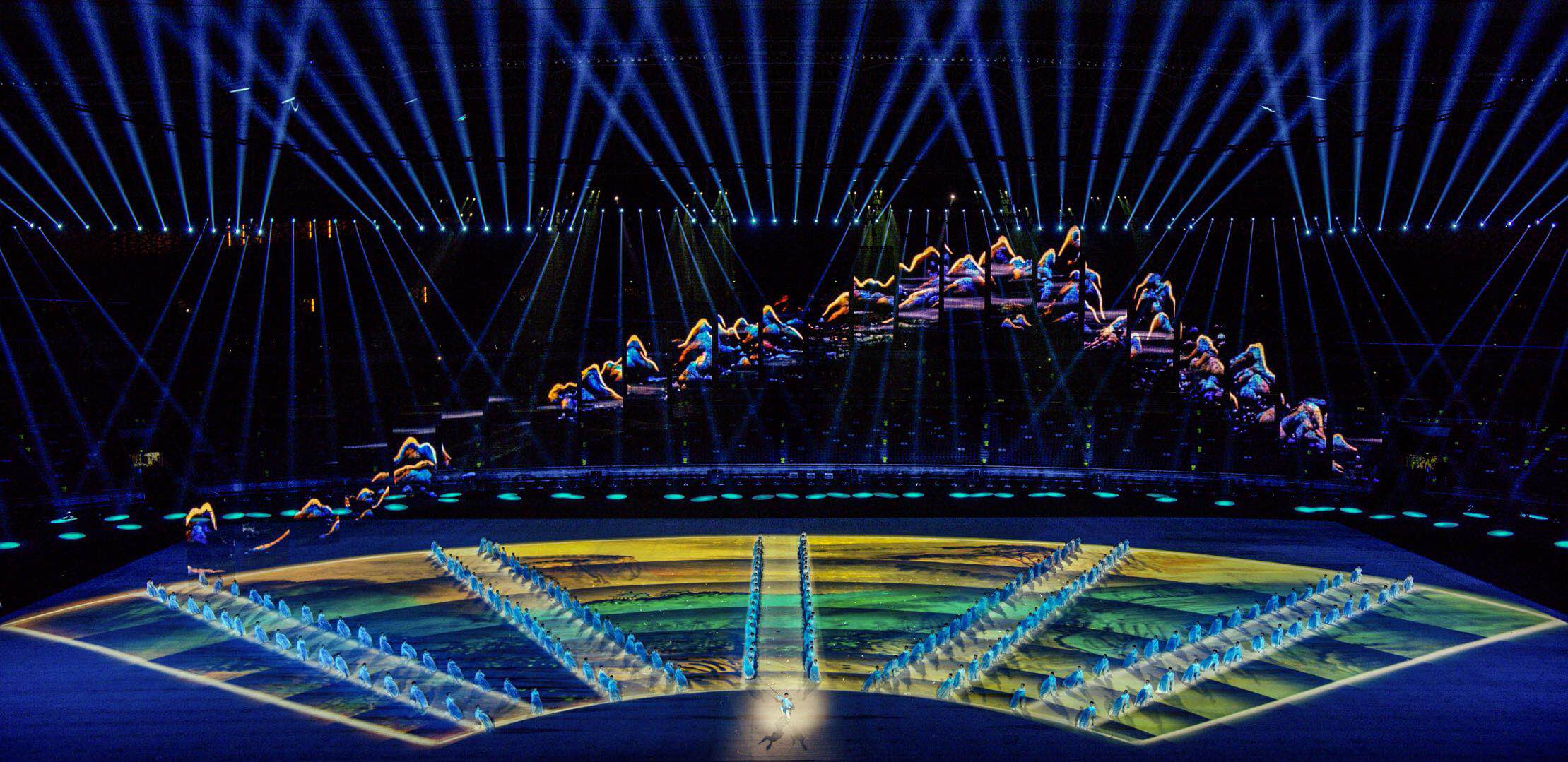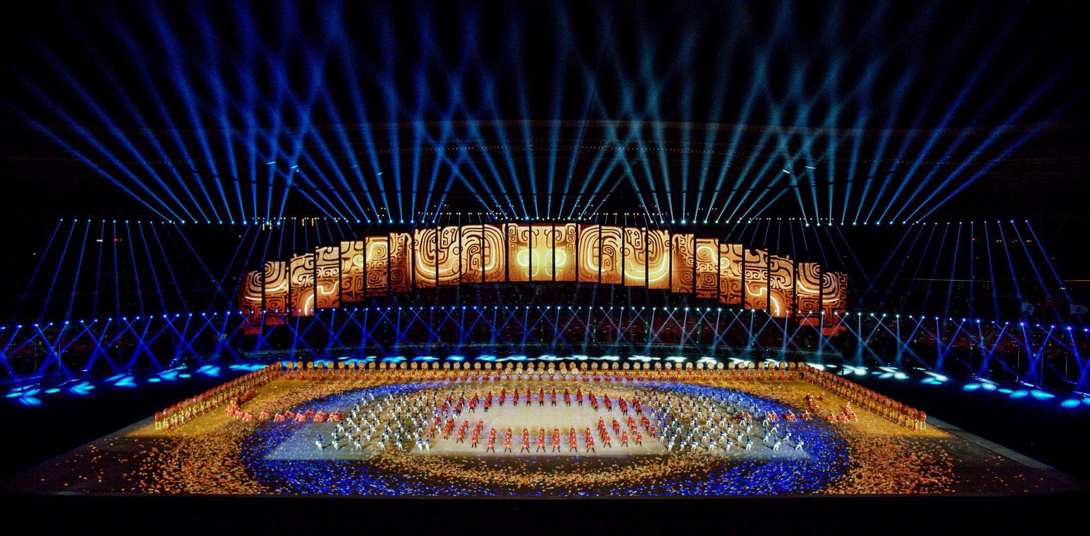 運(yùn)動會開閉幕式整體設(shè)計的核心理念為“奮斗幸福觀”,開幕式的主題為“奮斗新時代“,閉幕式將以“幸福新征程”為主題與之呼應(yīng)。開幕式演出運(yùn)用了大型燈光設(shè)備、舞臺機(jī)械裝置、高清投影設(shè)備、懸掛表演裝置、先進(jìn)音響設(shè)備、空中飛行設(shè)備等多種技術(shù)手段,形成地面、舞臺、空中三維藝術(shù)呈現(xiàn)形式,將中國傳統(tǒng)文化與國際先進(jìn)科技進(jìn)行完美結(jié)合,形成一臺國際化高水準(zhǔn)的全景化演出。
