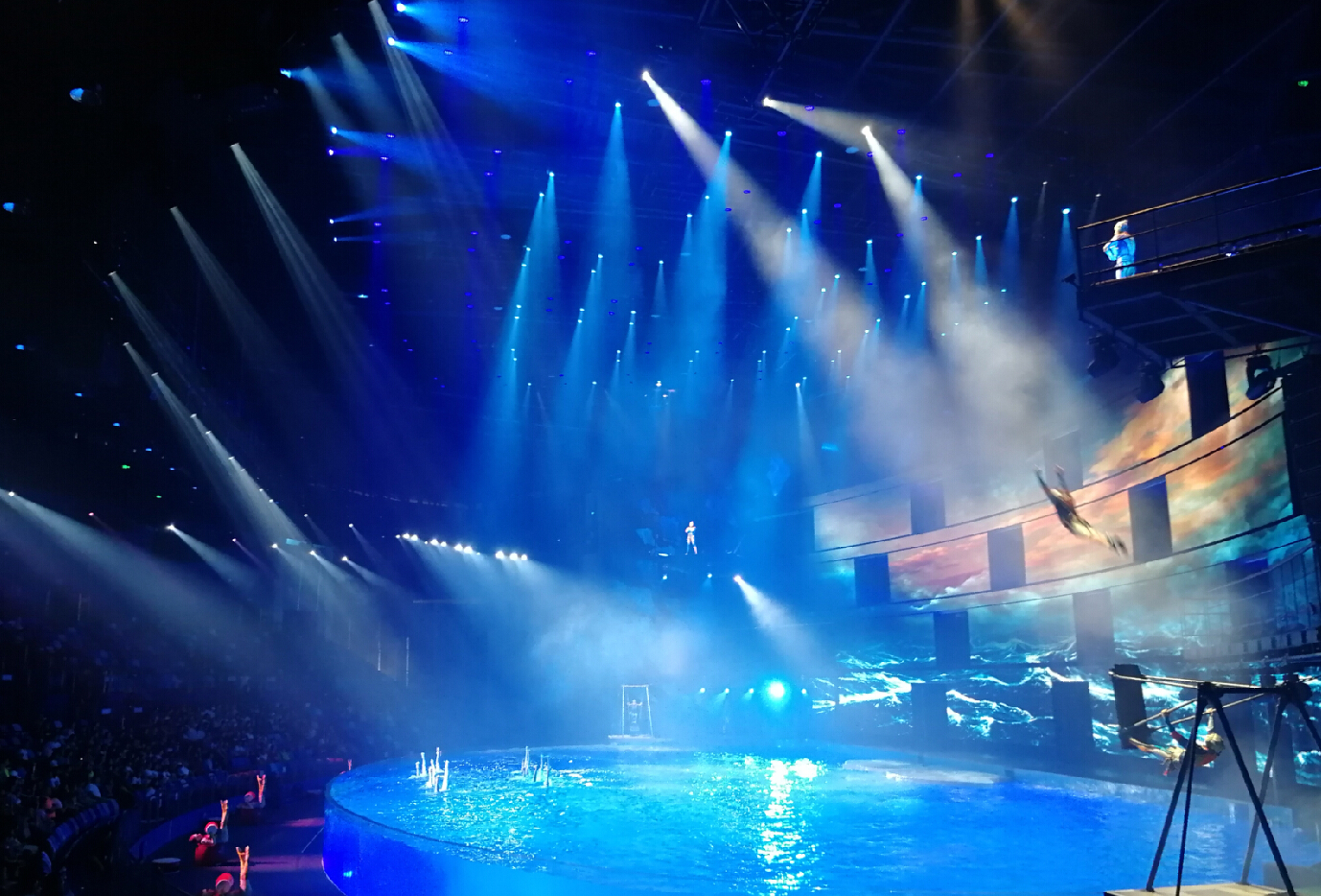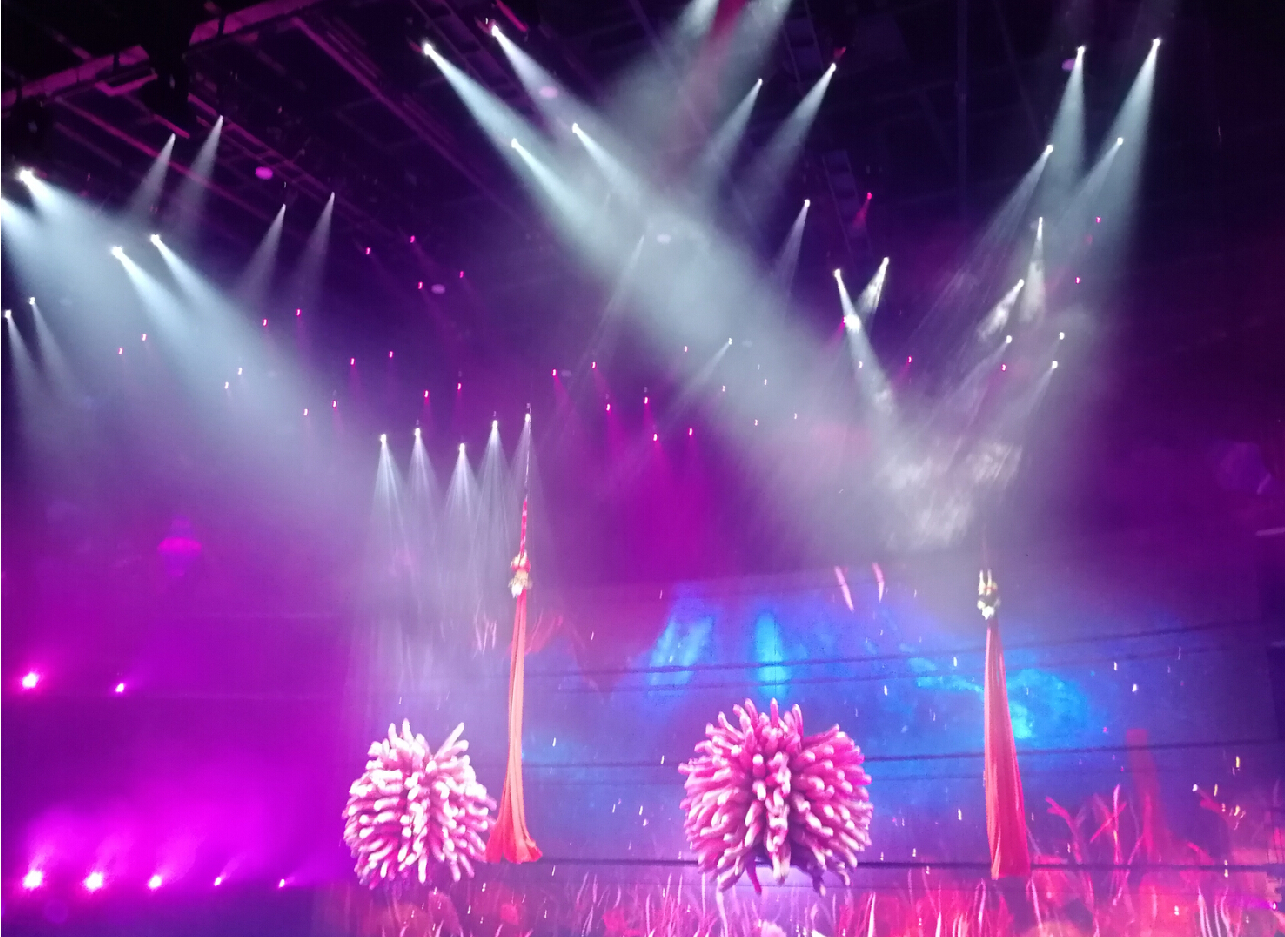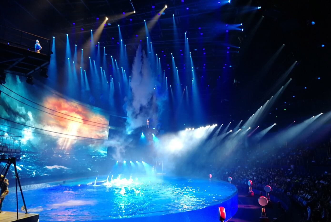 演出中,浩洋電子全能王三合一電腦燈G12HYBRID、切割燈V3000P、圖案燈V2500S、LED PAR燈A51-E近400臺專業(yè)舞臺燈光設備為現(xiàn)場助陣。浩洋燈光設備投射出炫目的燈光,與現(xiàn)場的煙霧、水面特效、無人機、各種大型自動化舞美機械在內(nèi)的國際頂尖舞臺技術(shù)相互配合,融合水中芭蕾、空中藝術(shù)、花式跳水等眾多表演元素,共同呈現(xiàn)原創(chuàng)鉅制,還原了傳說中神秘古老的“亞特蘭蒂斯”世界。
