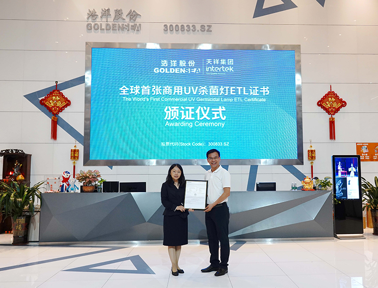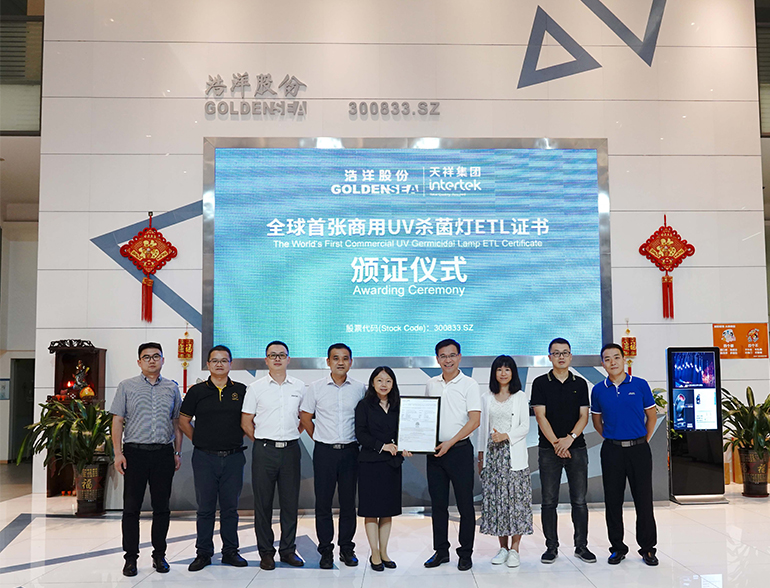 浩洋股份作為專業(yè)照明行業(yè)的高新技術企業(yè),自始至終堅持嚴苛的品質管理。在今年疫情蔓延的嚴峻環(huán)境下推出GOLDENSEA UV品牌的紫外消毒燈具產(chǎn)品,代表了浩洋股份對健康科技的重視、對專業(yè)照明相關領域延伸的能力與決心。據(jù)了解,浩洋股份的GOLDENSEA UV的產(chǎn)品此前已都通過了歐洲的CE認證獲得了歐洲市場的通行證,本次能夠順利獲得Intertek全球首張商用UV燈ETL證書,不僅提高了GOLDENSEA UV的國際市場競爭力,打通了北美市場的通道,更是證明了浩洋股份對產(chǎn)品卓越品質的追求。