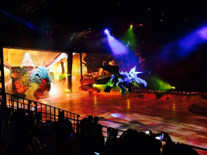 《馴龍高手》被演出方定義為超視景LIVE秀,故事改編自曾獲奧斯卡多項(xiàng)提名的同名電影《馴龍高手》維京少年Hiccup(小嗝嗝)和他的龍Toothless(夜煞)之間的故事。該劇采用了高科技仿真模擬技術(shù),也是全球巡演史上運(yùn)用電子動(dòng)畫技術(shù)最多的一次現(xiàn)場秀。電影版《馴龍高手》上映已4年之久,維京人馴龍的故事逐漸被人們淡忘,但隨著《馴龍高手》2的北美上映,再一次激起了沉寂4年的“龍迷”的回憶。