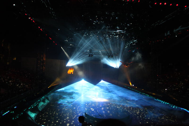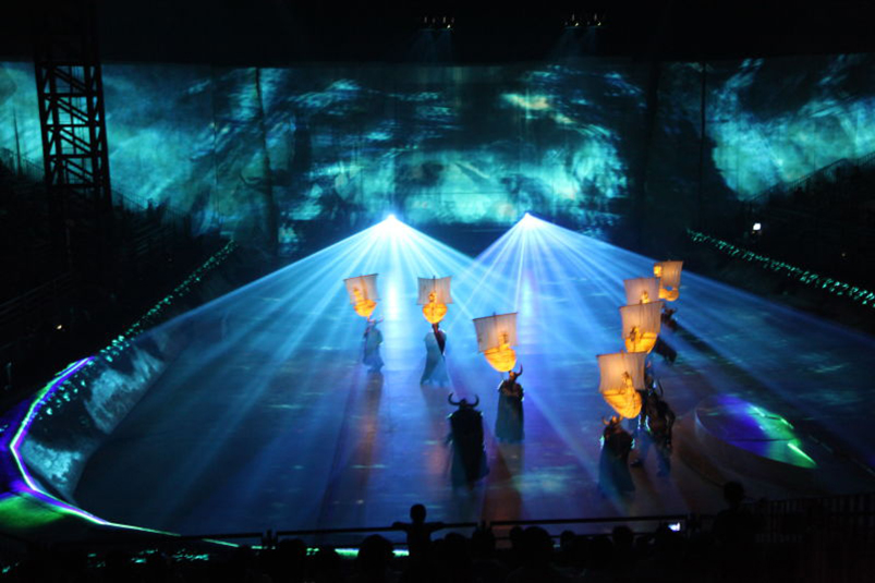 演出采用了浩洋電子近400臺(tái)燈具。舞臺(tái)上,維京少年騎龍奔跑跳躍,這里的龍不僅能上天入海、噴火放電,還會(huì)撒嬌耍賴,表情細(xì)膩逼真,在浩洋燈光的卓越顯色效果、高亮度輸出及投影的無縫銜接映襯下,共同營造了一個(gè)動(dòng)感、超炫的舞臺(tái),將童話中的維京人與飛龍共存的魔幻世界真正搬到了觀眾眼前。浩洋電子服務(wù)演出的燈具包括:84臺(tái)切割燈V3000P,24臺(tái)鉑金系列切割燈PT801P,240臺(tái)RGBW 四合一大功率LED 防水PAR燈OVAL 7D,50臺(tái)LED染色燈PB12A。浩洋燈光卓越效果、高亮度輸出、在演出中完美襯托出了超炫、動(dòng)感動(dòng)態(tài)的舞臺(tái),將童話中的維京人與飛龍共存的魔幻世界真正的搬到了觀眾眼前。