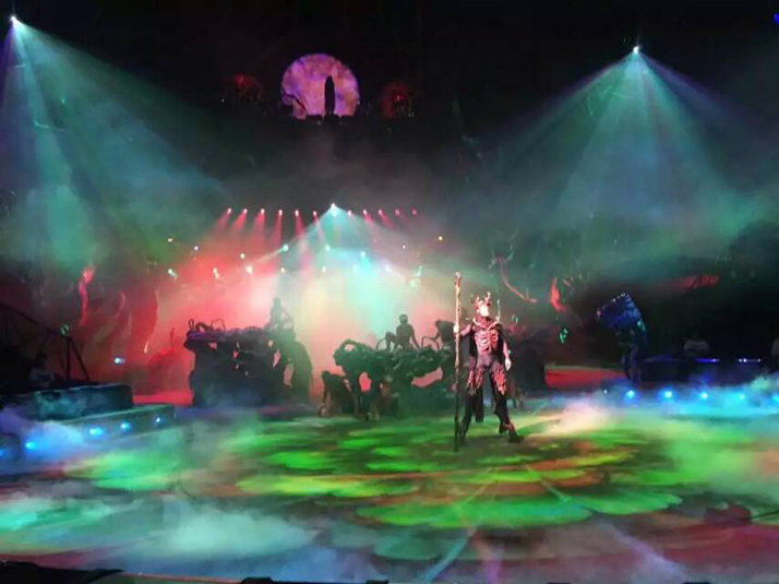浩洋電子搖頭染色燈PT330W外形輕巧,光斑角度小,具有光斑均勻、色彩柔和細(xì)膩等特點(diǎn),曾在張惠妹2015烏托邦世界巡城演唱會(huì)和Katy Perry棱鏡中國(guó)首秀中有過(guò)精彩表現(xiàn)。在傣秀舞臺(tái)上配合浩洋電子另一款大功率搖頭染色燈V2000W,共同烘托出奇幻、絢爛的視覺(jué)效果。