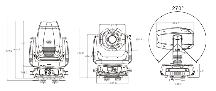 1個色片盤:8個插拔式色片+白光,半色效果,色片可任意定位,帶雙向旋轉(zhuǎn)的彩虹效果