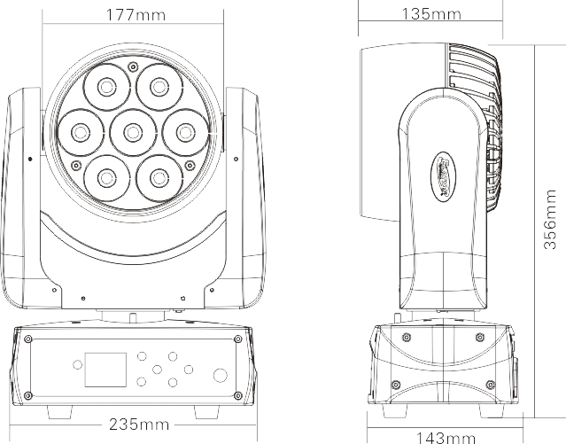 LED類型:7顆15W大功率RGBW 4合1 LED, 達(dá)到均勻細(xì)膩的混色效果