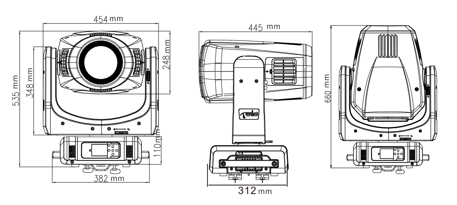 復(fù)位檢測(cè)設(shè)置:長(zhǎng)按左右鍵鎖住水平垂直掃描復(fù)位,可支持燈具在飛機(jī)箱內(nèi)即完成復(fù)位檢測(cè)