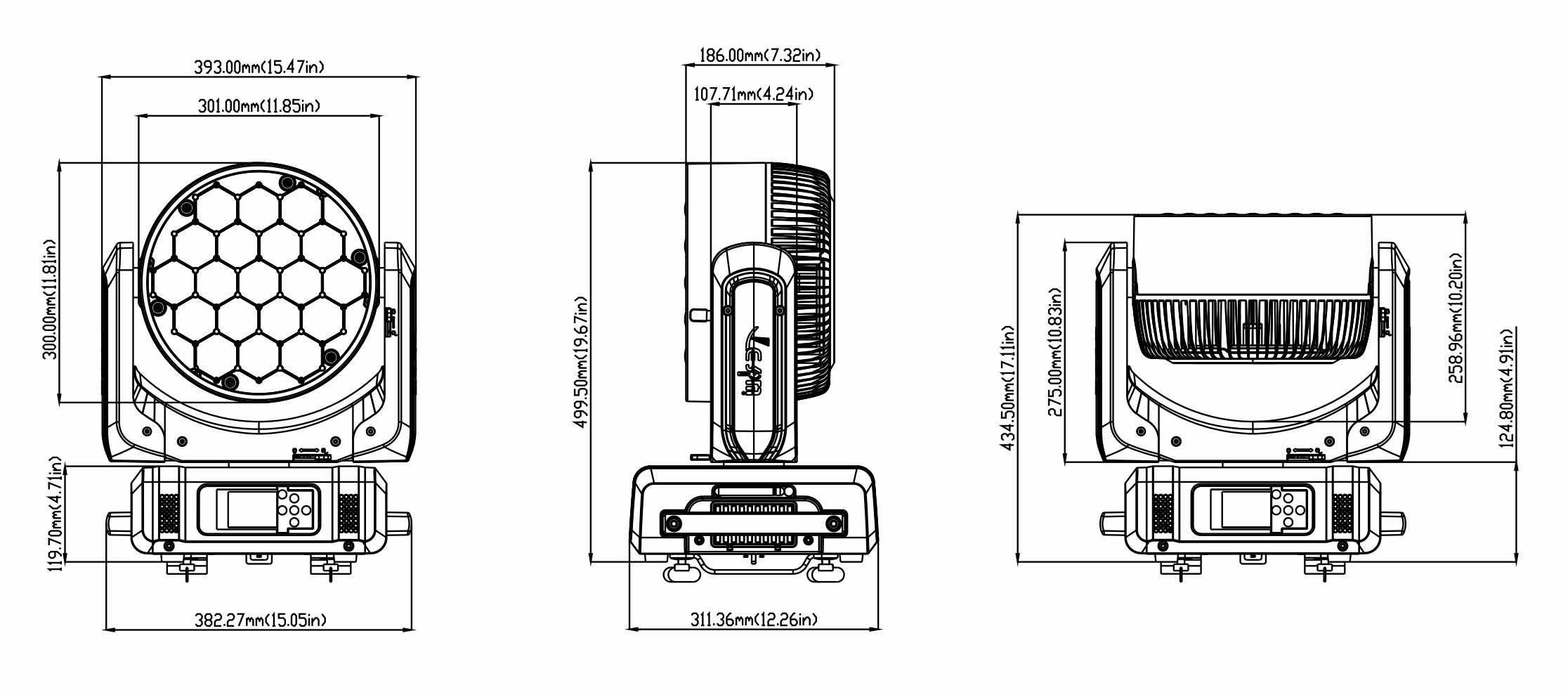 光源:19顆40W大功率RGBW 4合1 LED