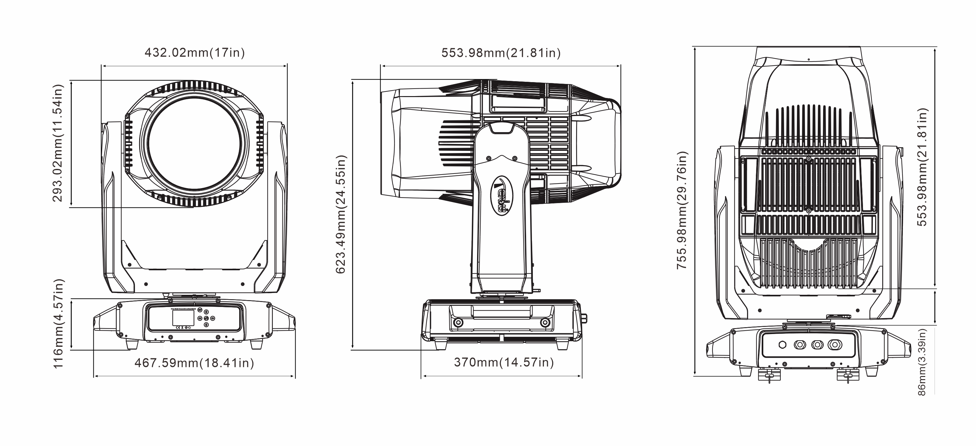 可從控臺完成更改DMX地址碼,機器重設等功能
