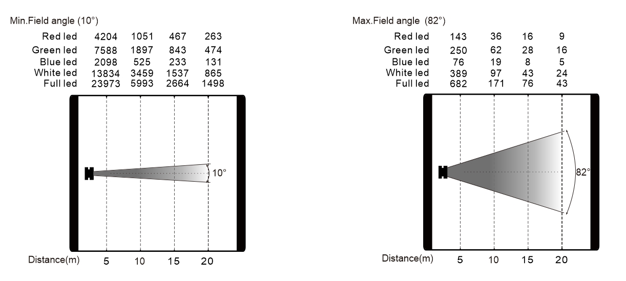 變焦范圍: 6°- 55°(光束角), 10°-82° (光斑角)