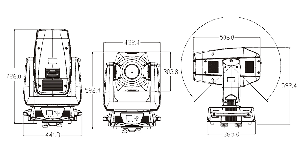 切割效果:一組由4個(gè)切角片組成可控制的光斑切角系統(tǒng),整個(gè)切角系統(tǒng)可做90°旋轉(zhuǎn)