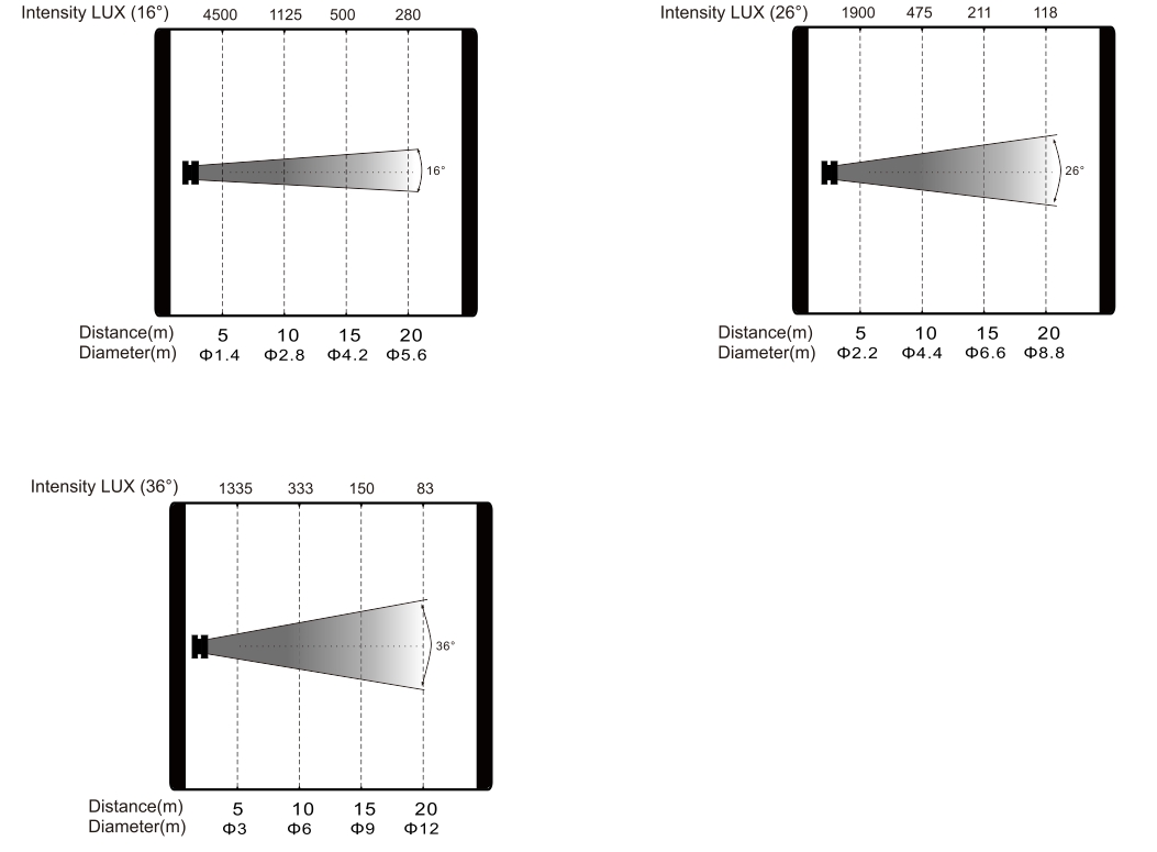 光學角度:手動調(diào)焦16°-36°;(可選5°,10° )