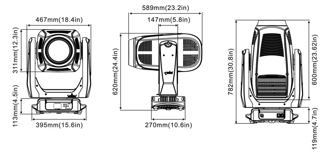 可從控臺完成更改DMX地址碼,機器重設(shè)等功能