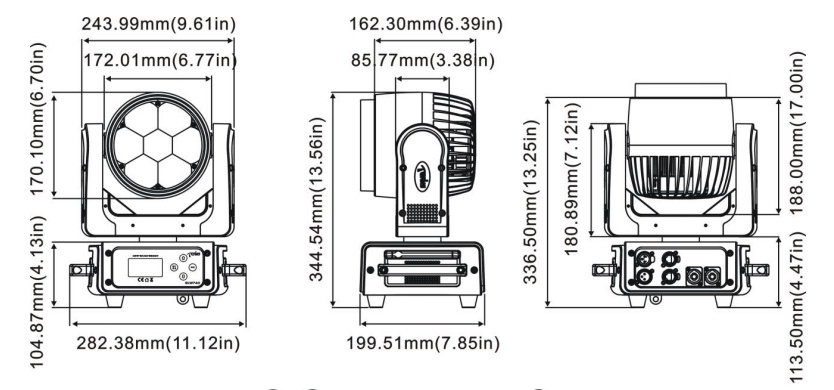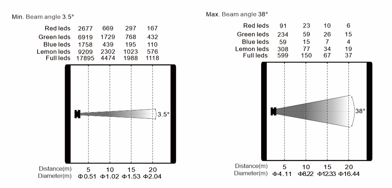變焦范圍:光束角:3.5°-38°,光斑角:6.5°-45°