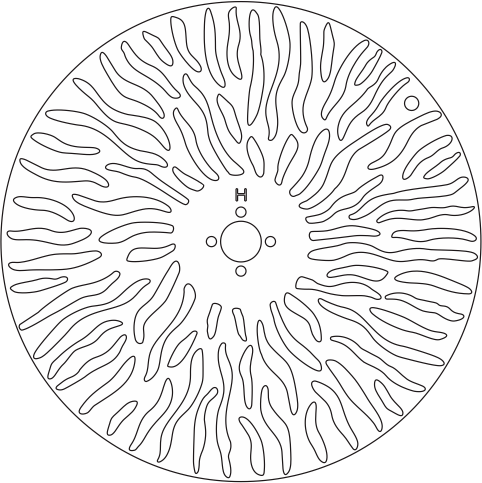 1個(gè)旋轉(zhuǎn)圖案盤(pán):7個(gè)插拔式的旋轉(zhuǎn)圖案片,帶雙向雙向旋轉(zhuǎn)、圖案抖動(dòng)和圖案任意定位功能,圖案外徑:36mm