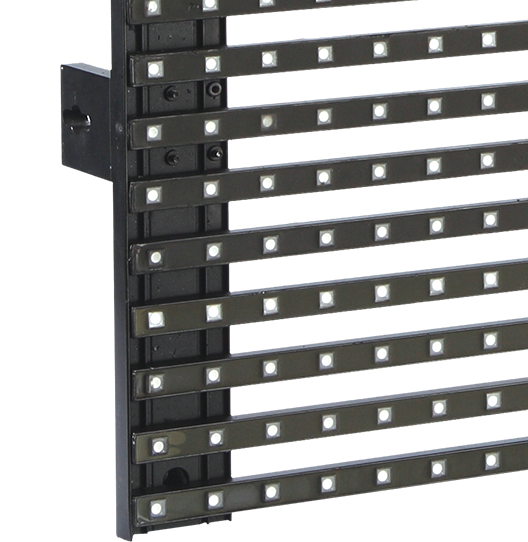 “條屏”系列顯示屏使用輕質(zhì)的鋁材結(jié)構(gòu),平整、堅固而且耐用,其良好的透光性和簡易快速的安裝特點(diǎn),已成為同類產(chǎn)品中的佼佼者。每一塊單獨(dú)的顯示屏都配有電源、連接單元,數(shù)據(jù)分配和信號處理系統(tǒng),每塊都配有把手,方便且易于安裝。